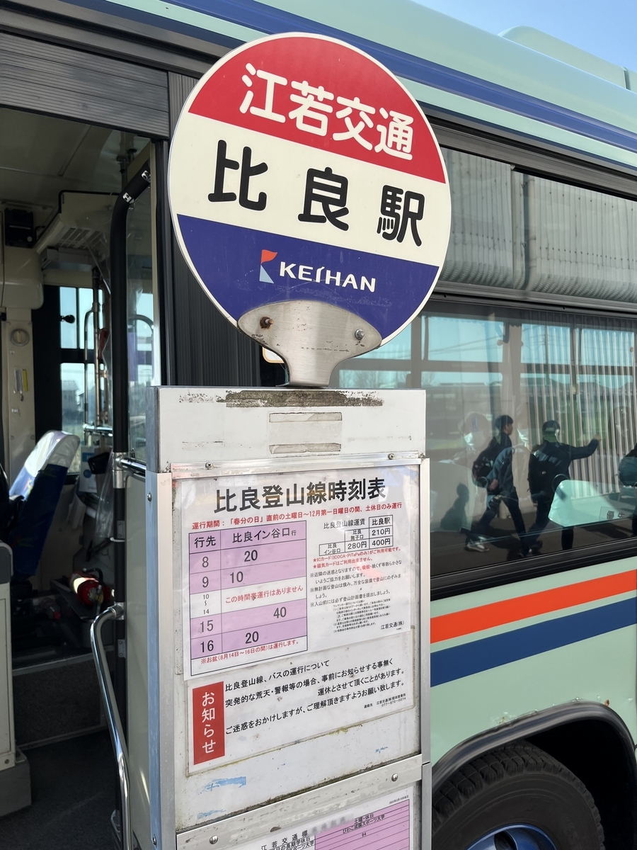 武奈ヶ岳に登るルートは琵琶湖側から登る比良駅ルートと琵琶湖の反対側からの坊村から登るルートの2パターンあります。私はJR沿線なので比良駅ルートを選択。春分の日からは比良駅からイン谷口までバスが運行していて登山口まで歩けば約1時間かかるところを15分ほどでいけます。やりたいことは山登りなのに、その前に1時間歩くのは、体力作りにはいいかもしれませんが正直楽をできるならしたいところなので、便利ですね。ただし帰りのバスはいい時間にないので注意です。行きは8:20と9:10があり、帰りは15:40と16:20があります。私は8:20に乗って登り始め、13:30にイン谷口に戻って来ました。